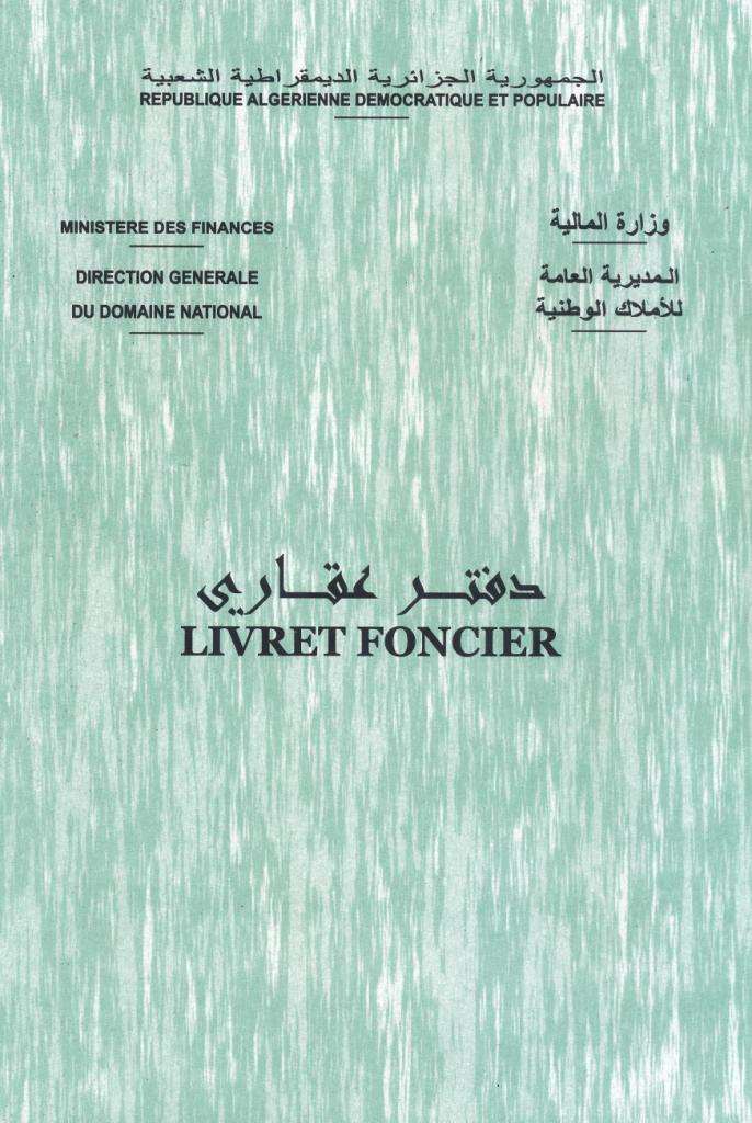 Le livret foncier الدفتر العقاري est considéré en Algérie, comme étant l’un des documents les plus importants délivré par l’administration au propriétaire d’un bien immobilier afin de lui permettre de prouver son droit de propriété.
